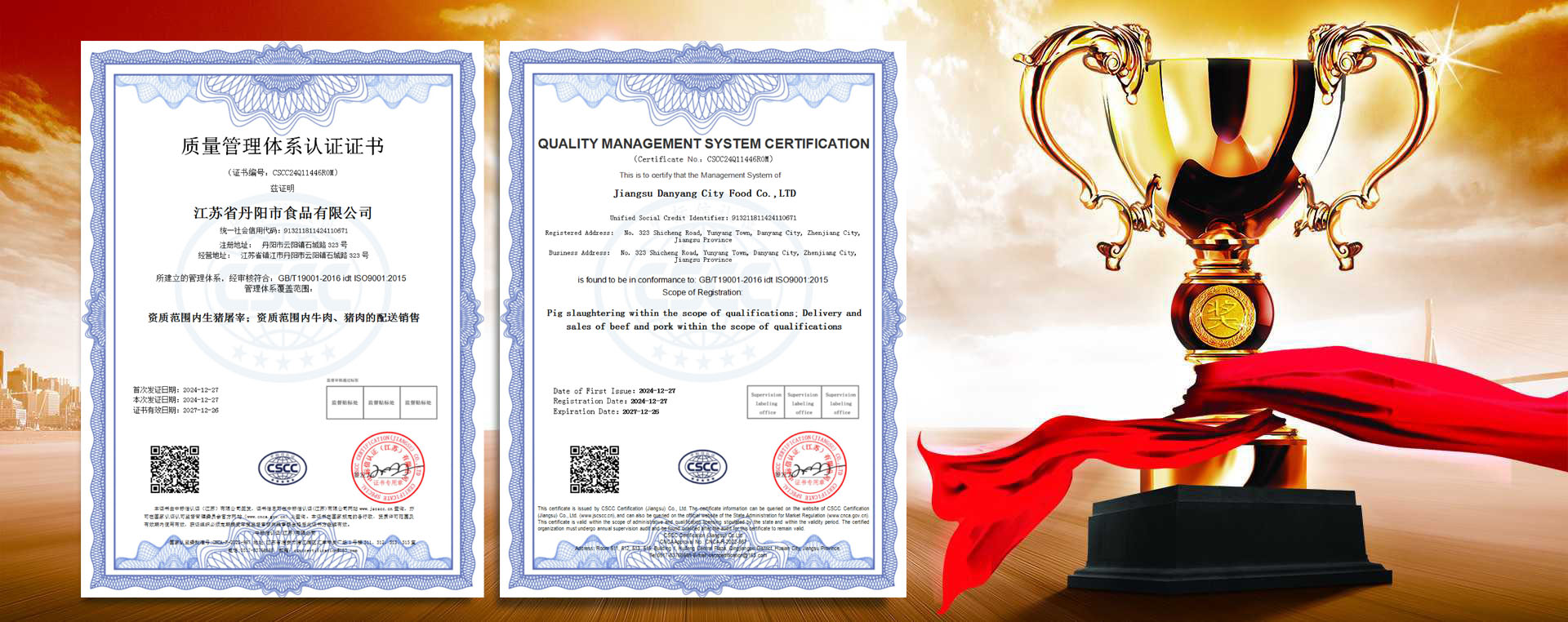 江蘇省丹陽市食品有限公司是一家國有股份制企業,占地27.5畝,屠宰車間1369㎡,待宰間806㎡,其他用房1974㎡,年設計屠宰量為30萬頭,現有職工81人。 我公司是丹陽地區唯一一家生豬定點屠宰企業,主要從事生豬屠宰加工、豬肉及副產品批發零售等業務。于2011年5月取得國家A級屠宰許可證,2013年榮獲江蘇省肉類協會誠信經營示范企業,2016年獲得江蘇省商貿流通服務業誠實守信示范企業,2018年4月通過屠宰行業ISO9001質量管理體系認證,2019年2月獲得“省級生豬屠宰標準化示范企業”稱號。 現擁有兩條標準化屠宰線,一座專業的豬肉批發市場,城區直營門店1家,入駐鄉鎮超市4家。經過多年努力,目前......